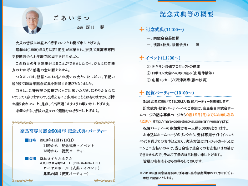 ■奈良高専同窓会50周年 記念式典・パーティー概要